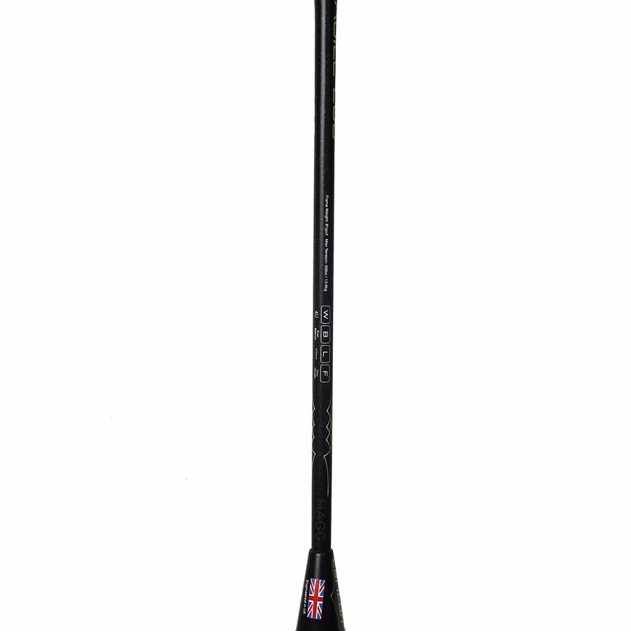 Full Graphite Racket Weight : 80-84g (4U) Tension : 30 lbs / 13.6 kg Length : 675 mm Shaft Flexibility :Extra Flexible Head Shape:Isometric Balance:Even Balanced Frame Material:Japanese H.M Carbon Colour :Black Neon Yellow Includes Racket Cover