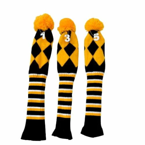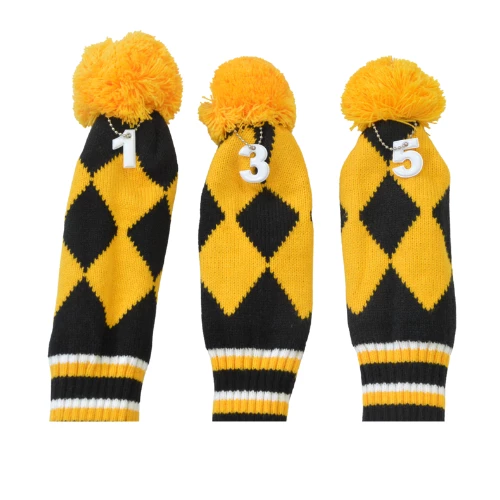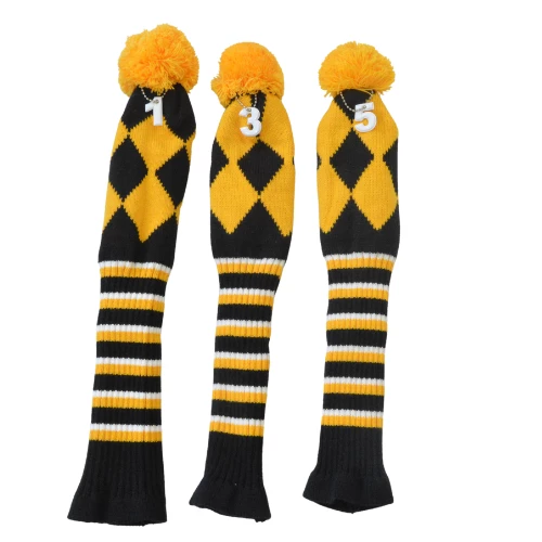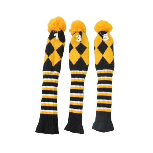 New 🌟 GolfBasic Knitted Head Covers (Set Of 3 Pcs) Gold/Black 🎉